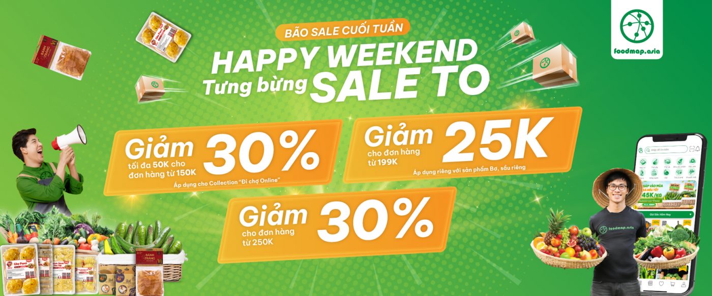 Foodmap gửi tặng cả nhà các voucher mua sắm hấp dẫn, chỉ dành riêng cho những ngày cuối tuần (thứ 7 và chủ nhật). Ghé Foodmap mua những nông sản sạch, chất lượng, giá hấp dẫn cho gia đình thôi nào.